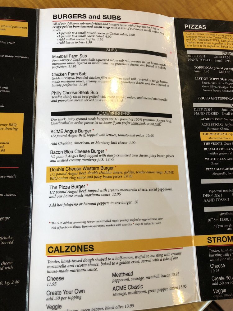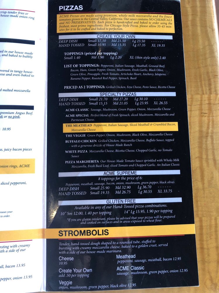 ACME Pizza Menu (2025 Update)