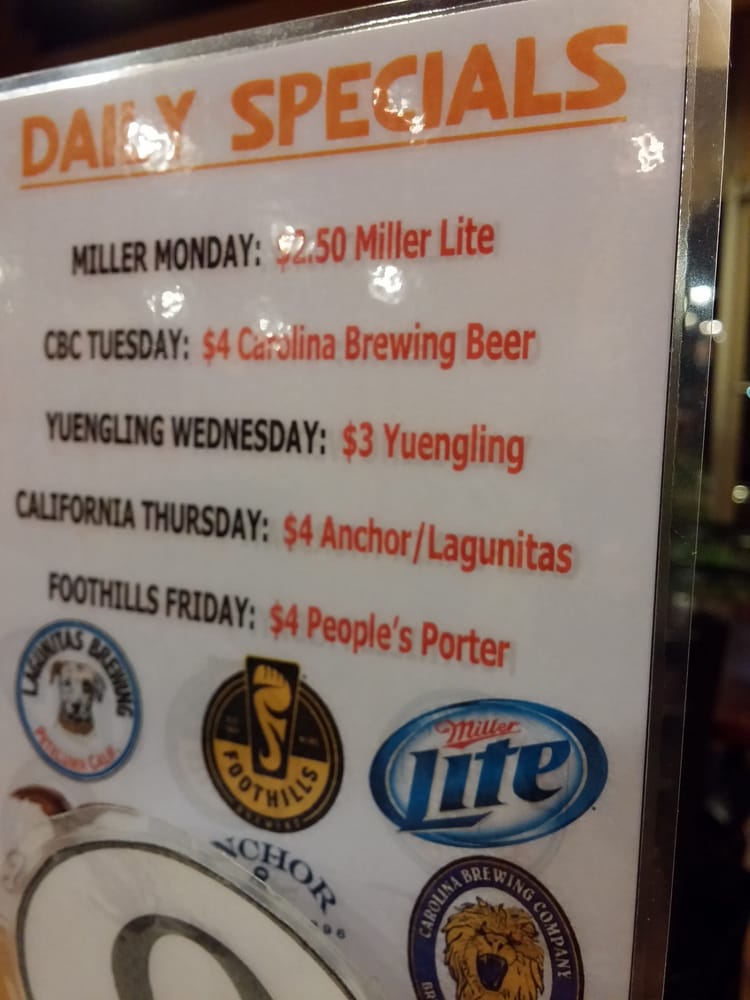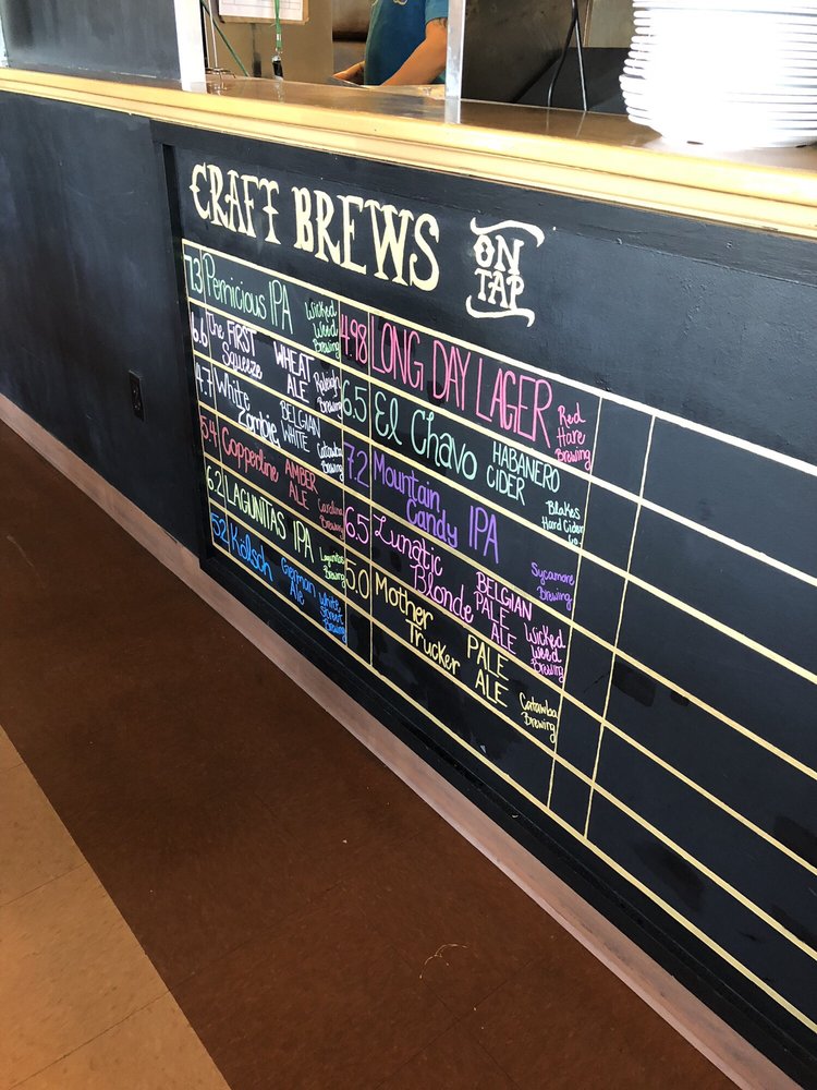 See list for 18 beers on tap Including local brews, plus beer specials and bottled beer